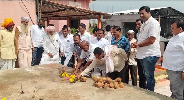 राशीन येथे मेहंत योगी वैजनाथ महाराज यांच्या मंदिर कामाचा शुभारंभ.