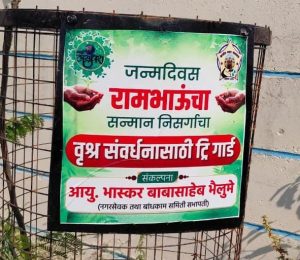 याच्या वाढदिवसाचे निमित्त साधून, हार-तुरे आणि अवाजवी खर्च टाळून बांधकाम समितीचे सभापती भास्कर भैलुमे यांनी रोपट्यांना लोखंडी जाळ्यांचे (ट्री गार्ड) संरक्षक कवच दिले.