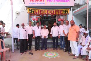 कर्जत : कर्जत शहराच्या व्यापारी नकाशावर आणखी एक महत्त्वाचा टप्पा जोडला गेला असून वेदांत ग्राफिक्स अँड प्रिंटर्स व प्रथमेश गिफ्टस् अँड नॉव्हेल्टिज् या दोन विश्वासार्ह व्यावसायिक संस्थांच्या नव्या व प्रशस्त दालनाचा संयुक्त भव्य शुभारंभ मोठ्या उत्साहात पार पडला. शहरातील व्यापारी, सामाजिक व राजकीय क्षेत्रातील मान्यवरांच्या उपस्थितीत हा सोहळा उत्साहपूर्ण वातावरणात झाला.